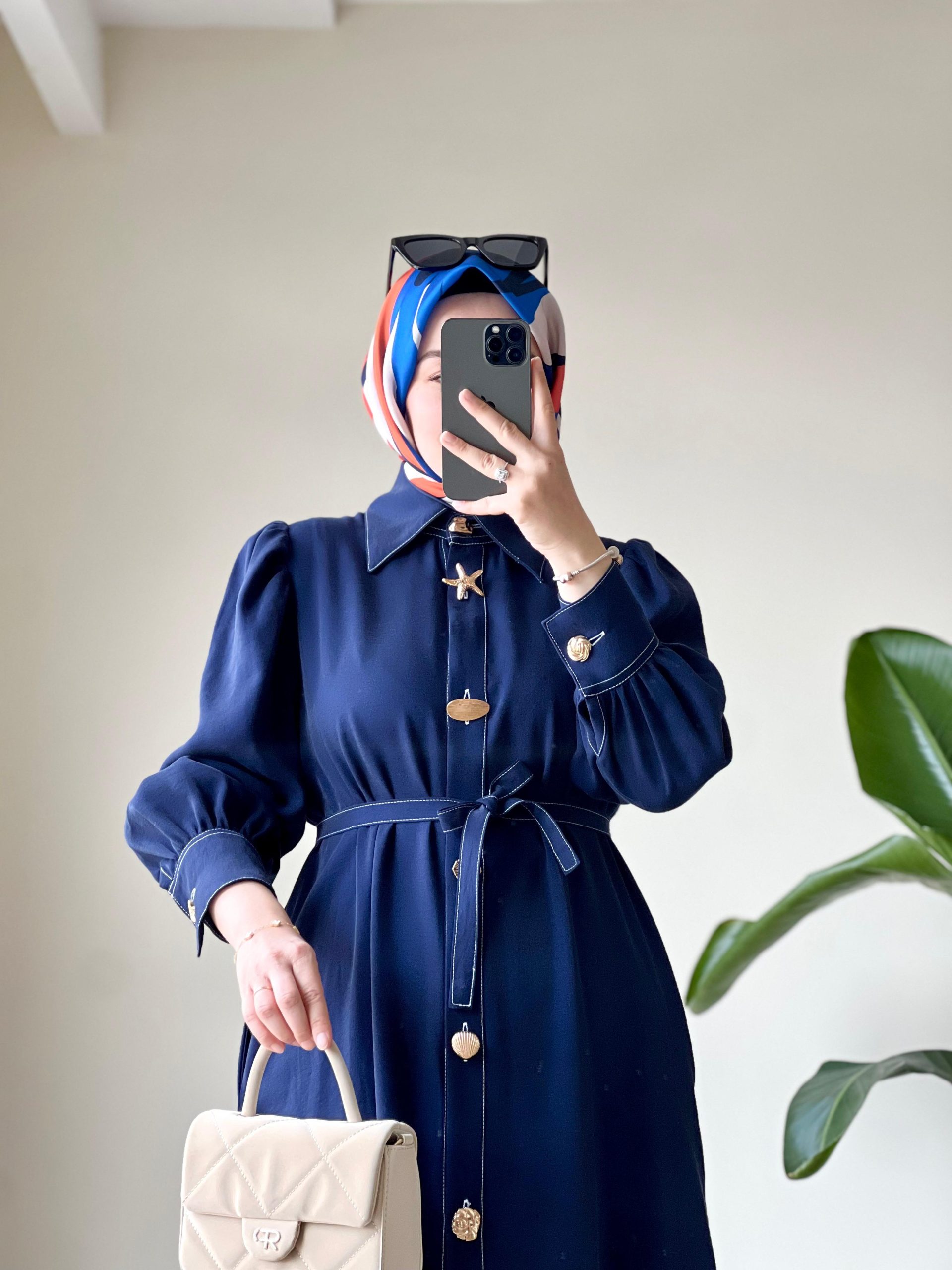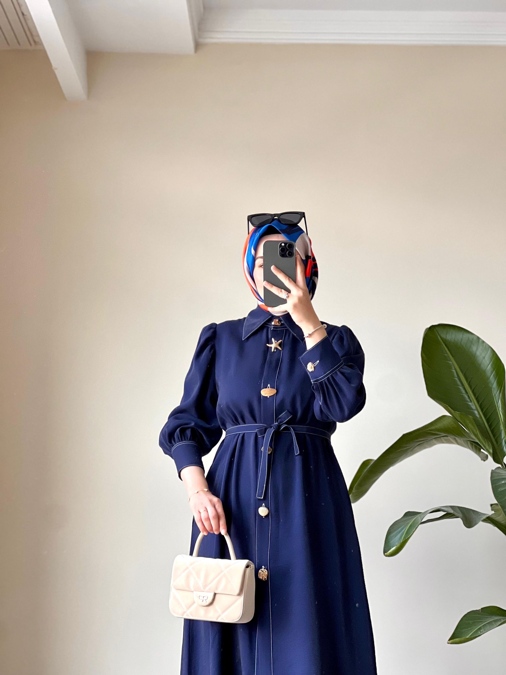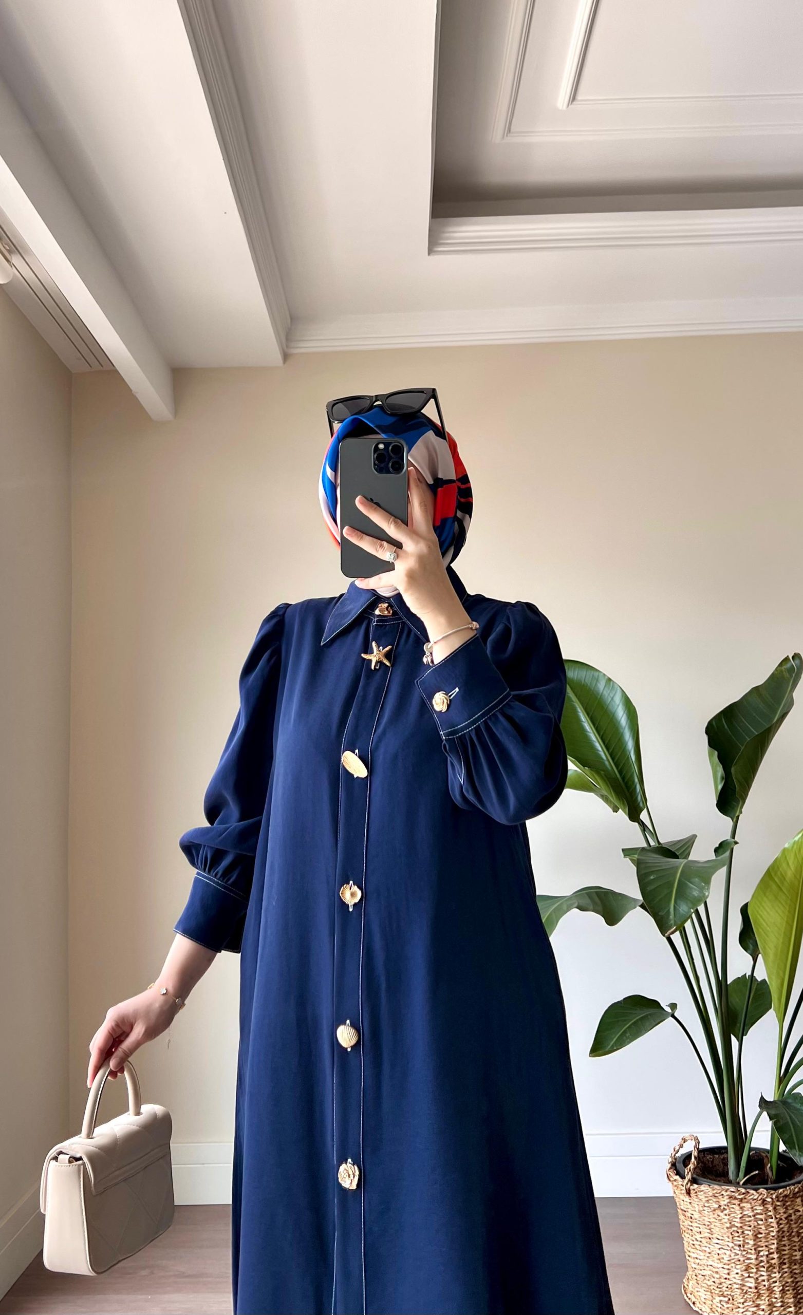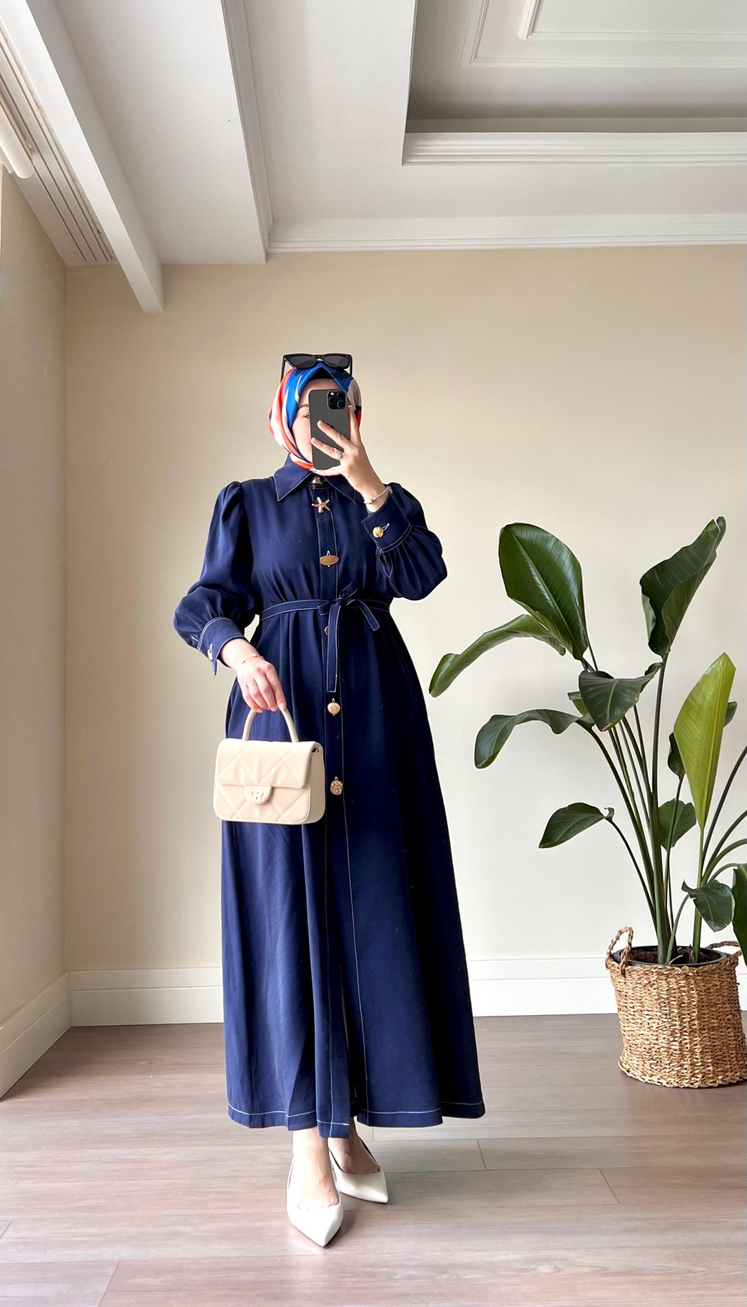 Kontrast Dikişli Taşlanmış Trenç Ferace Lacivert